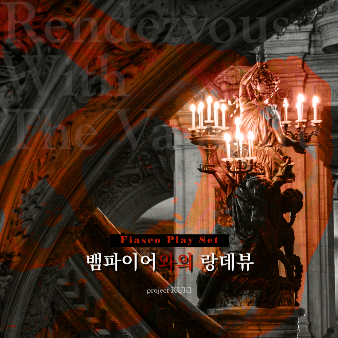 | [뱀파이어와의 랑데뷰]는 불리 펄핏 게임스의 피아스코와 함께 쓰는 액세서리입니다. 이 플레이세트는 ©2021 project KUKI! 입니다. 영문판 Fiasco는 ©2009 제이슨 모닝스타입니다. 한국어판 피아스코는 허락 하에 제작된 영문판 Fiasco의 번역으로, ©2015 도서출판 초여명입니다. 전권 유보. [피아스코 플레이세트 템플릿 링크] [도서출판 초여명] [피아스코 안내] |