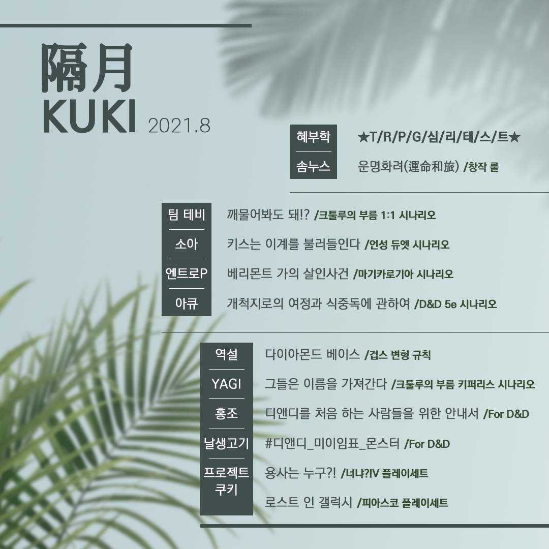 | 혜부학 | ★T/R/P/G/심/리/테/스/트★ | TRPG 룰 심리 테스트 |
