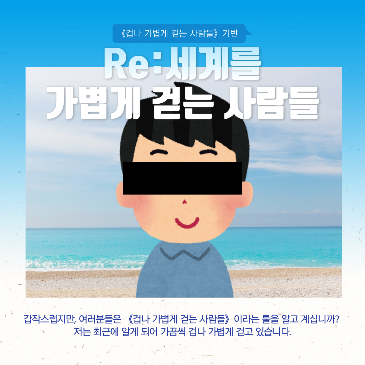 | 이 작품은 기어룽님(@gearo0ng)이 제작한 《겁나 가볍게 걷는 사람들》에 기반하여 제작하였습니다. 크레이티브 커먼즈 저작자표시 국제라이선스 4.0( CC-BY-4.0)에 의해 라이선스 (사용 허락)을 받았습니다. ☞ 겁나 가볍게 걷는 사람들(클릭) |