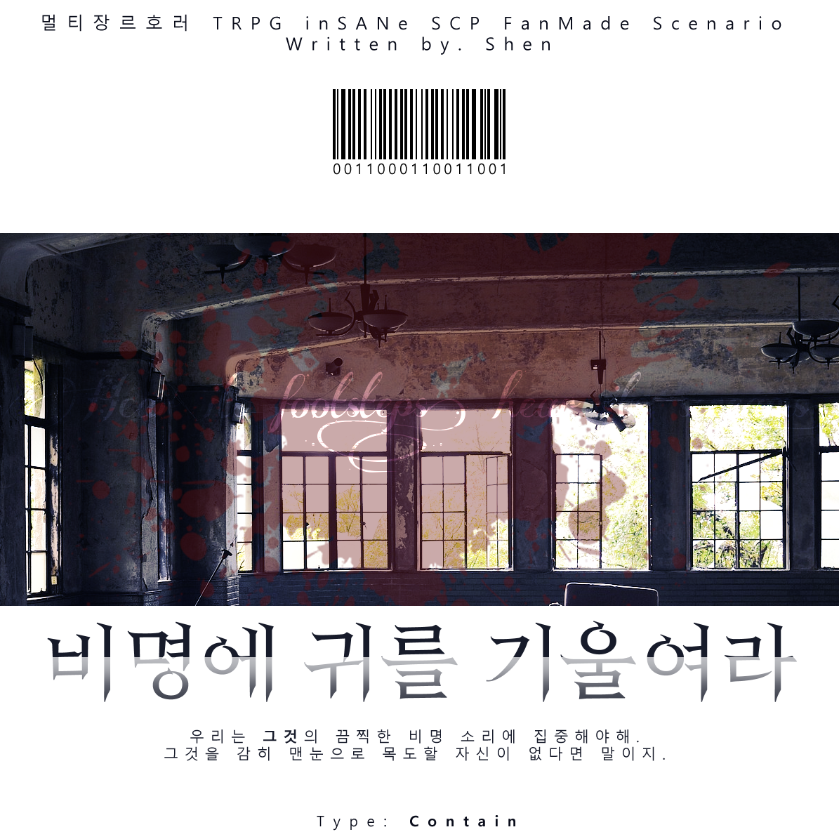 | [비명에 귀를 기울여라]는 모험기획국에서 출간하고 TRPG CLUB에서 번역한 '멀티장르호러 RPG 인세인', '인세인 3 인세인SCP'가 필요합니다. |