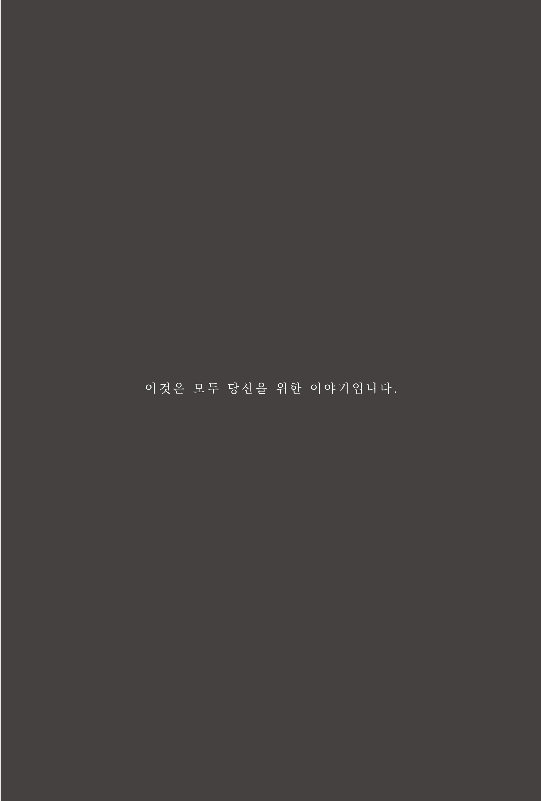 어떠한 이야기도 준비되어있지 않습니다. 어떤 것도 상정되어 있지 않습니다. 이후의 이야기는 오로지 당신과 당신이 사랑하는, 그리고 당신을 사랑하는 사람들이 함께 만들어 나가는 이야기입니다.