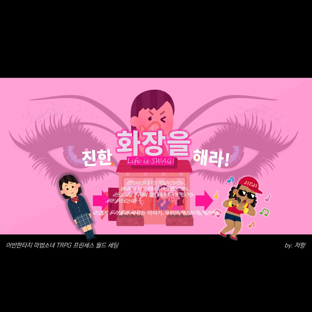 | 이 세팅은 저항(트위터 @resist_TRPG)이 쓰고 쿠키박스가 펴낸 『어반판타지 마법소녀 TRPG 프린세스 월드』와 함께 쓸 수 있는 보조자료입니다. 『프린세스 월드』는 ⓒ 2023 저항, 이 세팅은 ⓒ 2024 저항이며, 두 작품 모두 CC-BY-SA 3.0 Unported 라이선스에 따라 이용할 수 있습니다. |